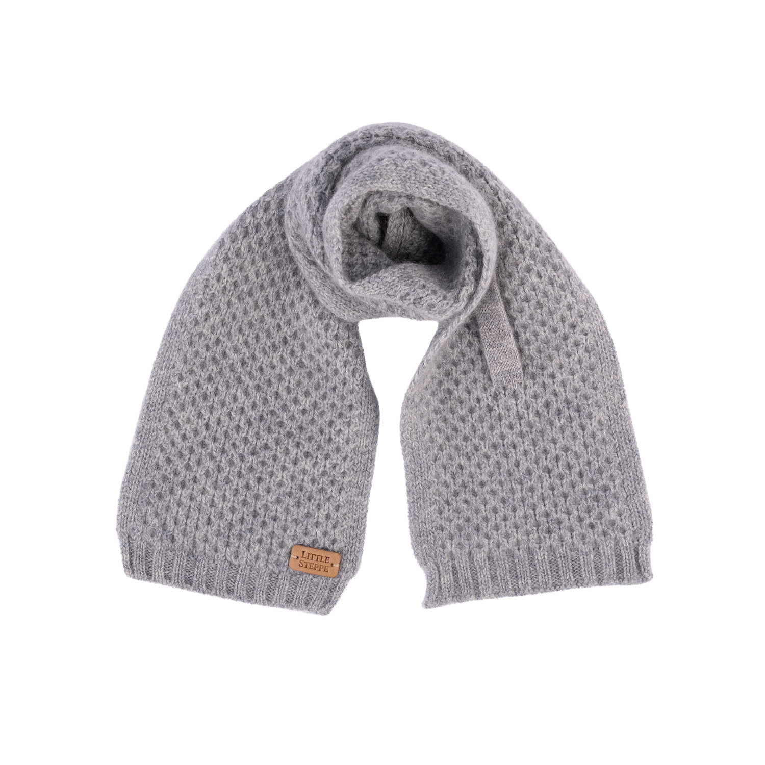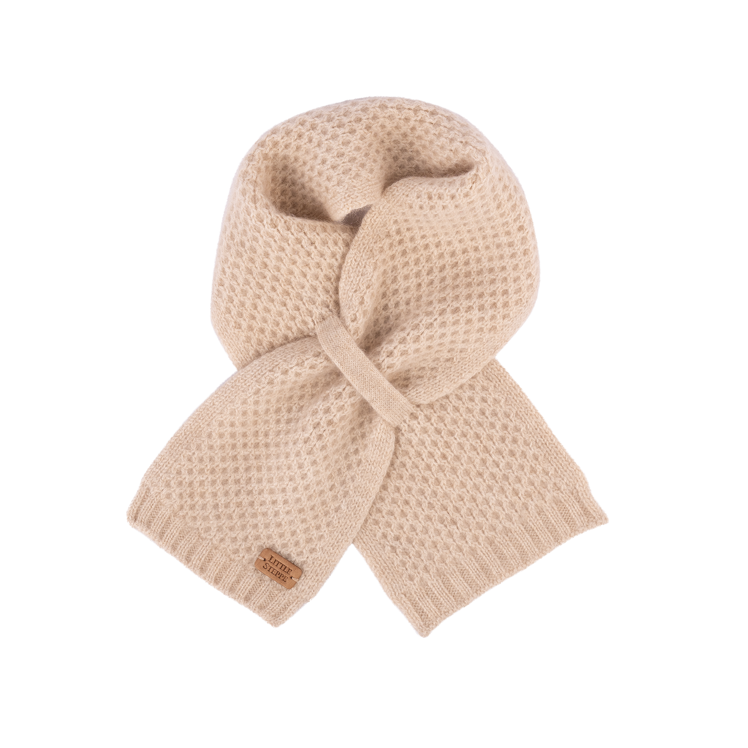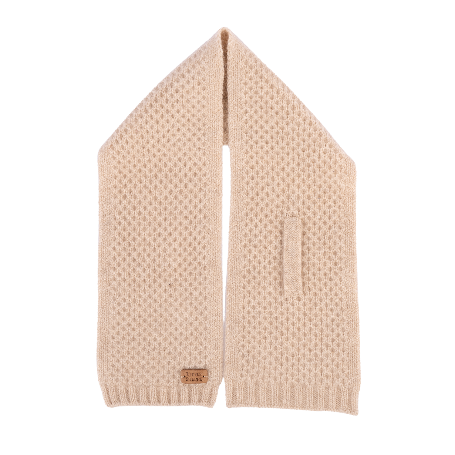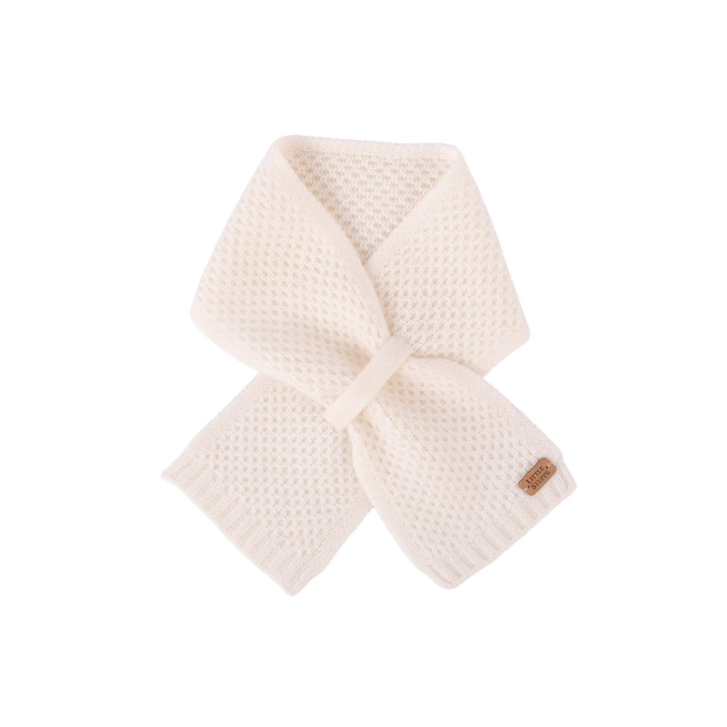 Warm and lovely soft scarf for babies and kids. It has a hook that makes it easy to wear and keep on.